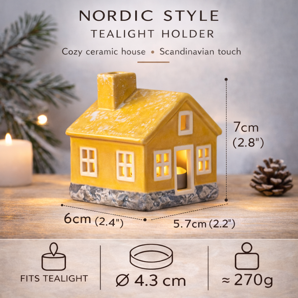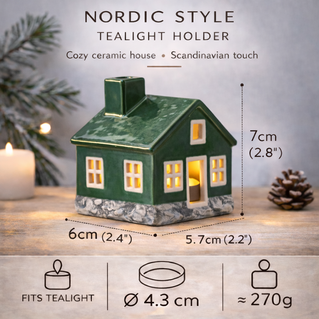 • 🔥 Heating System: Compatible with one standard tealight candle. Emits a warm, glowing 'Hygge' vibe through the hand-cut windows.